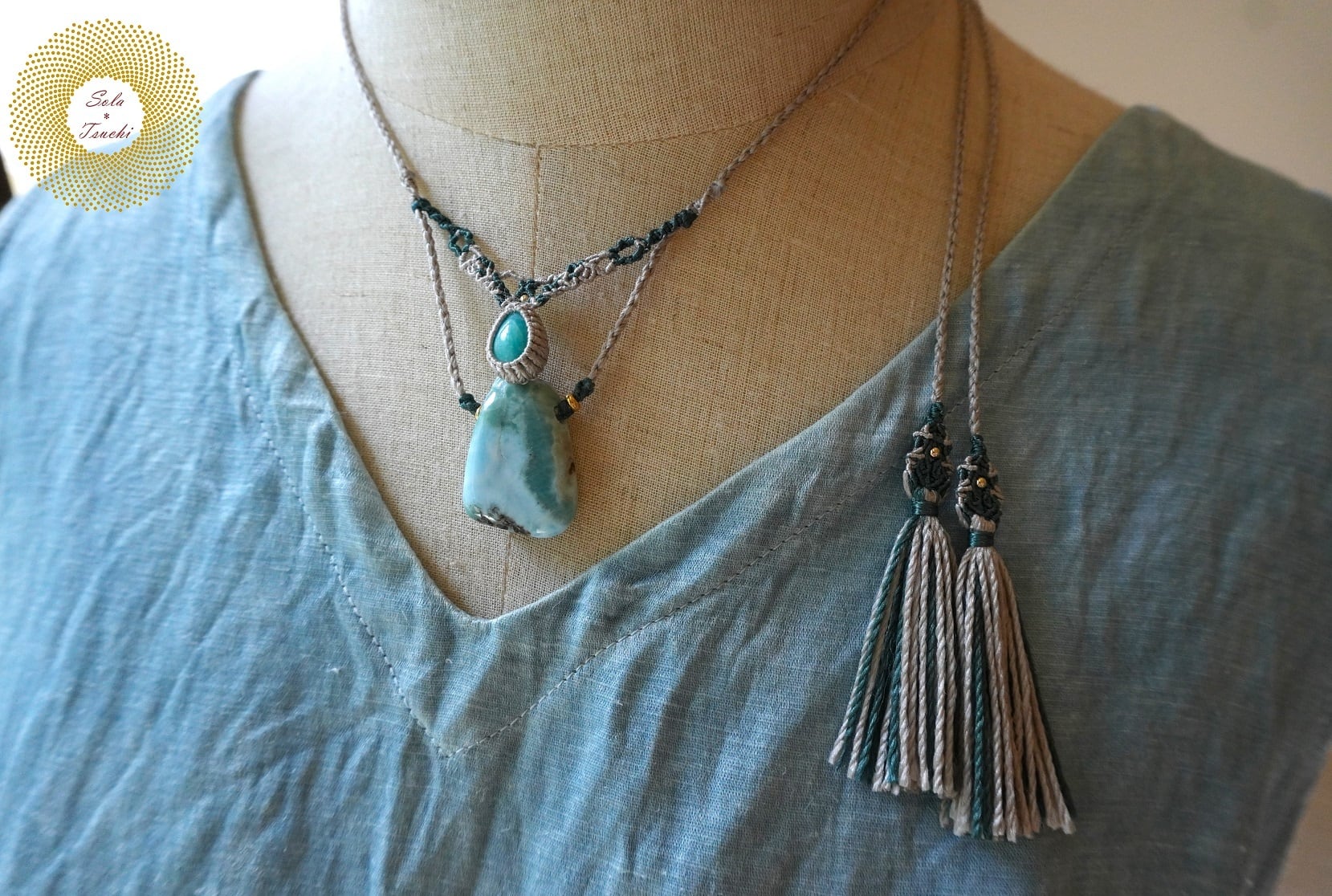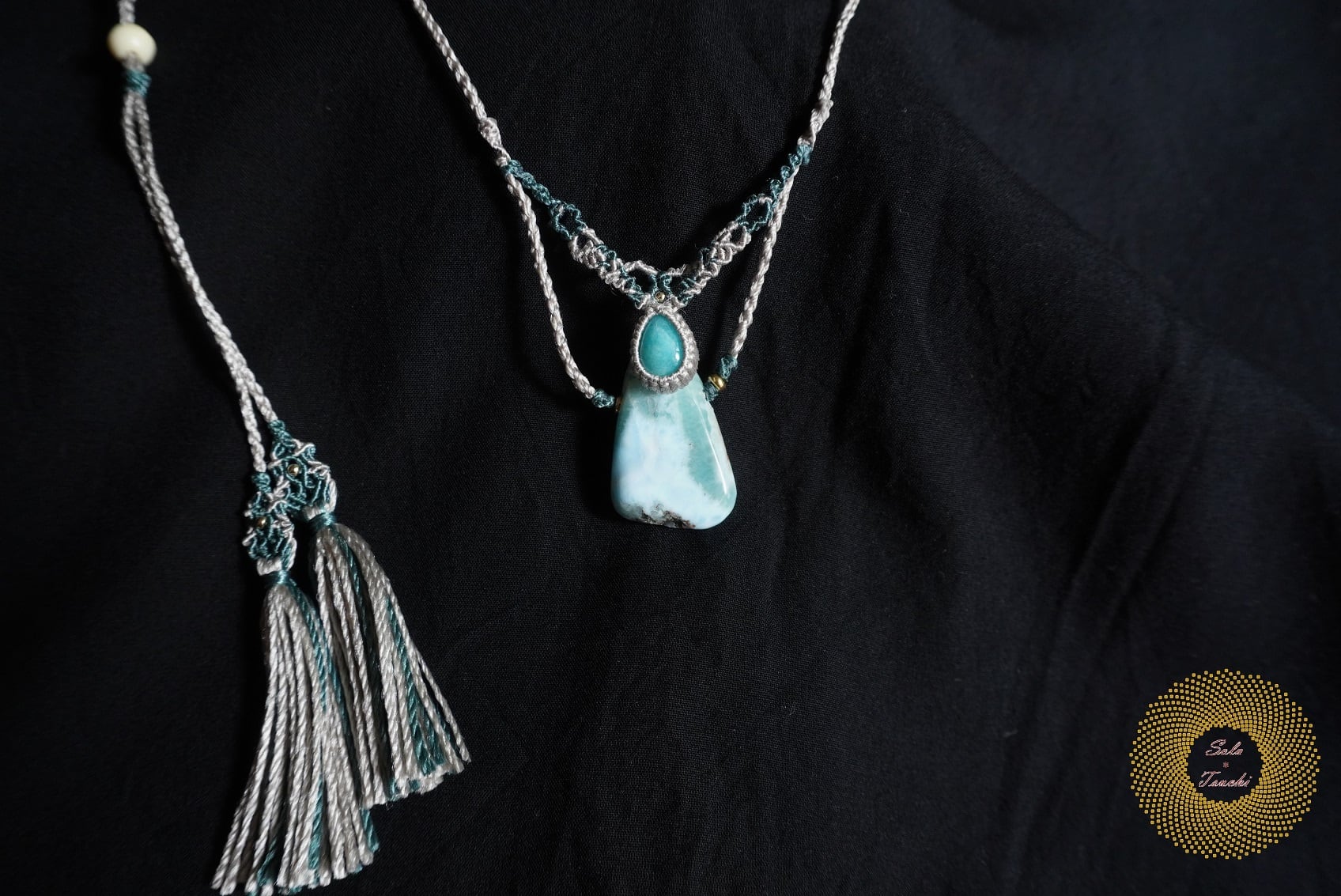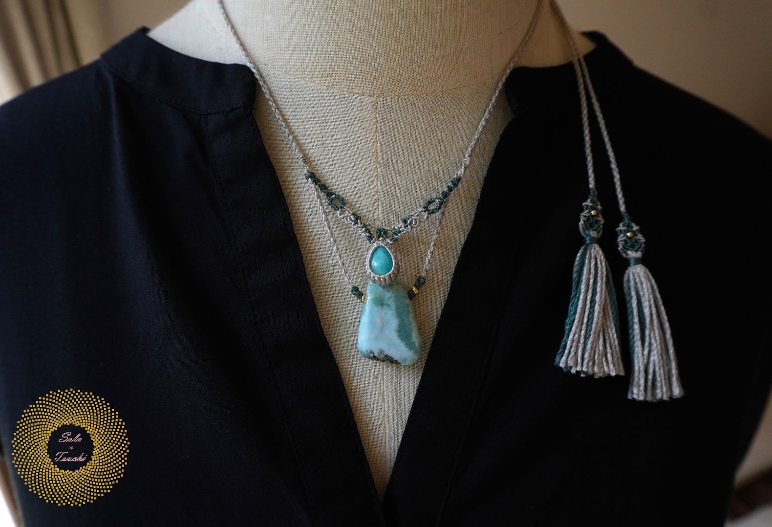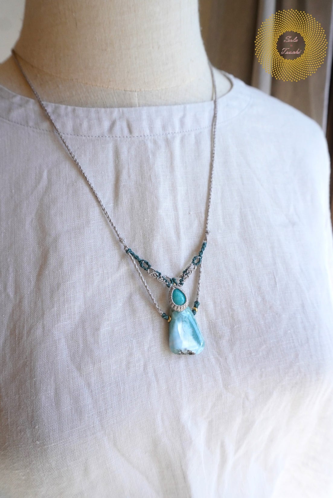 (絹糸)ラリマーとアマゾナイトのマクラメ編みペンダント 〜Breath of Earth〜