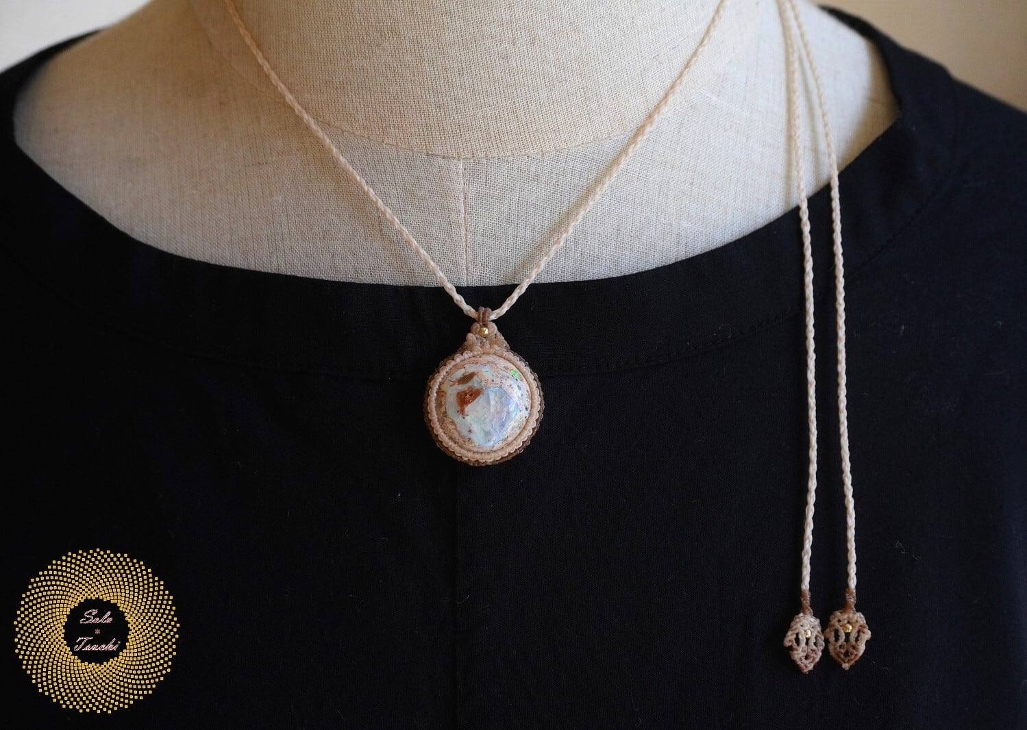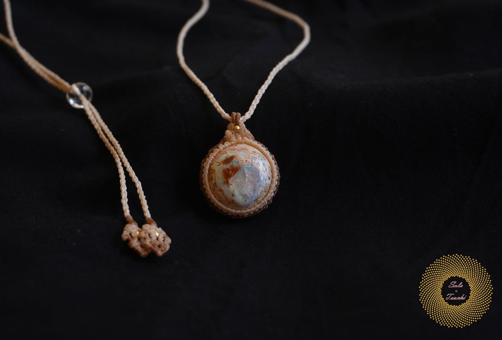 (ワックスコード)カンテラオパールのマクラメ編みペンダント 〜Everything is beautiful〜