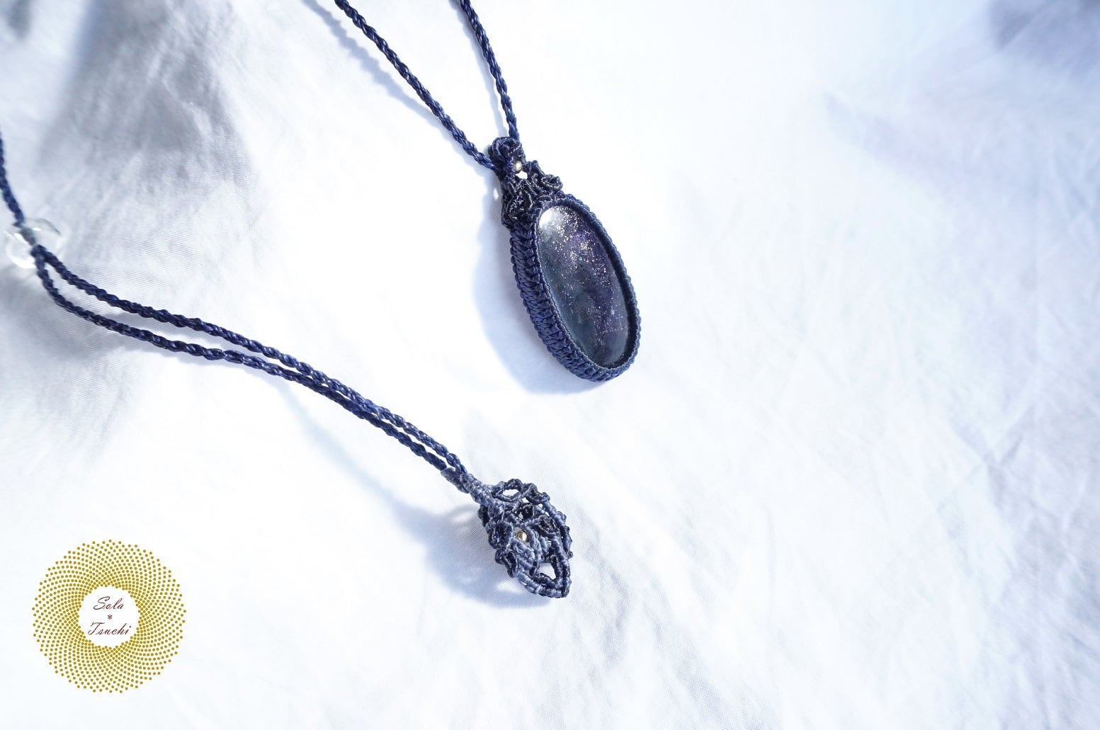 (ワックスコード) アイオライトサンストーンのマクラメ編みペンダント 〜Parallel World〜