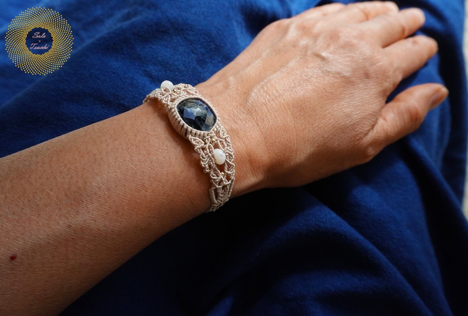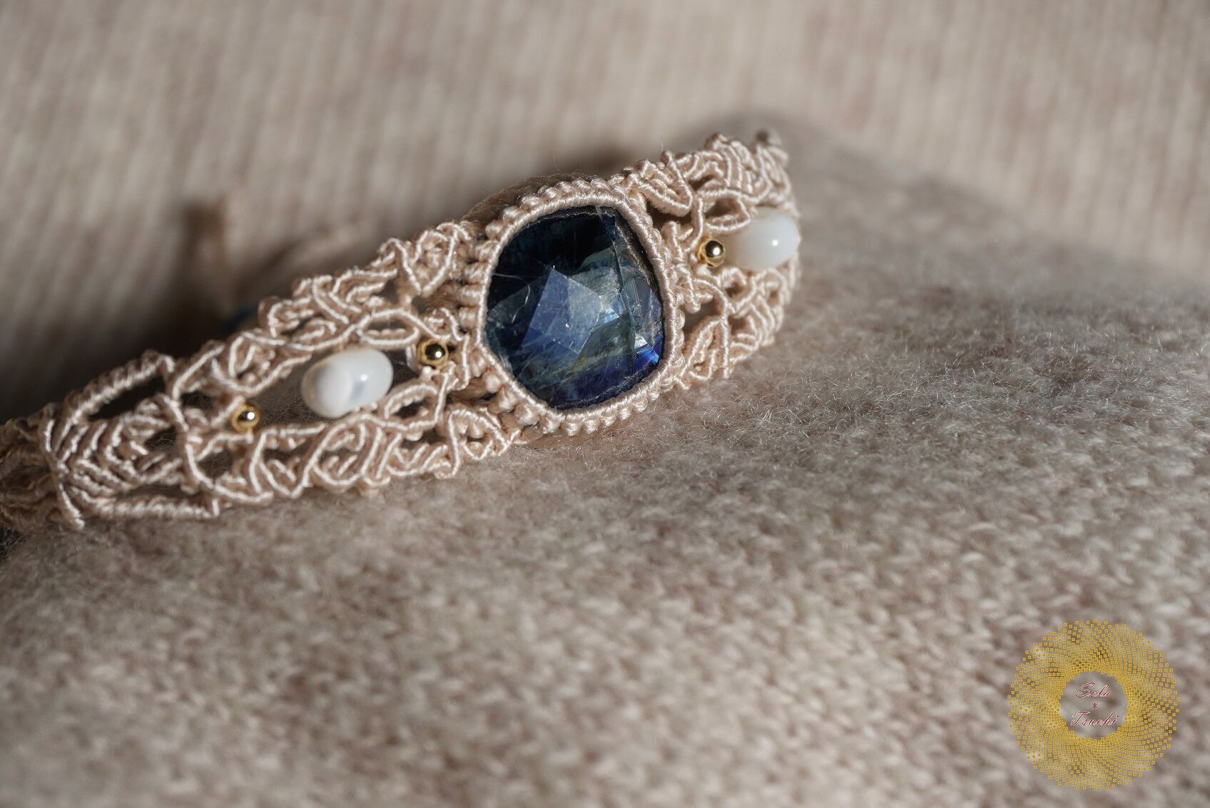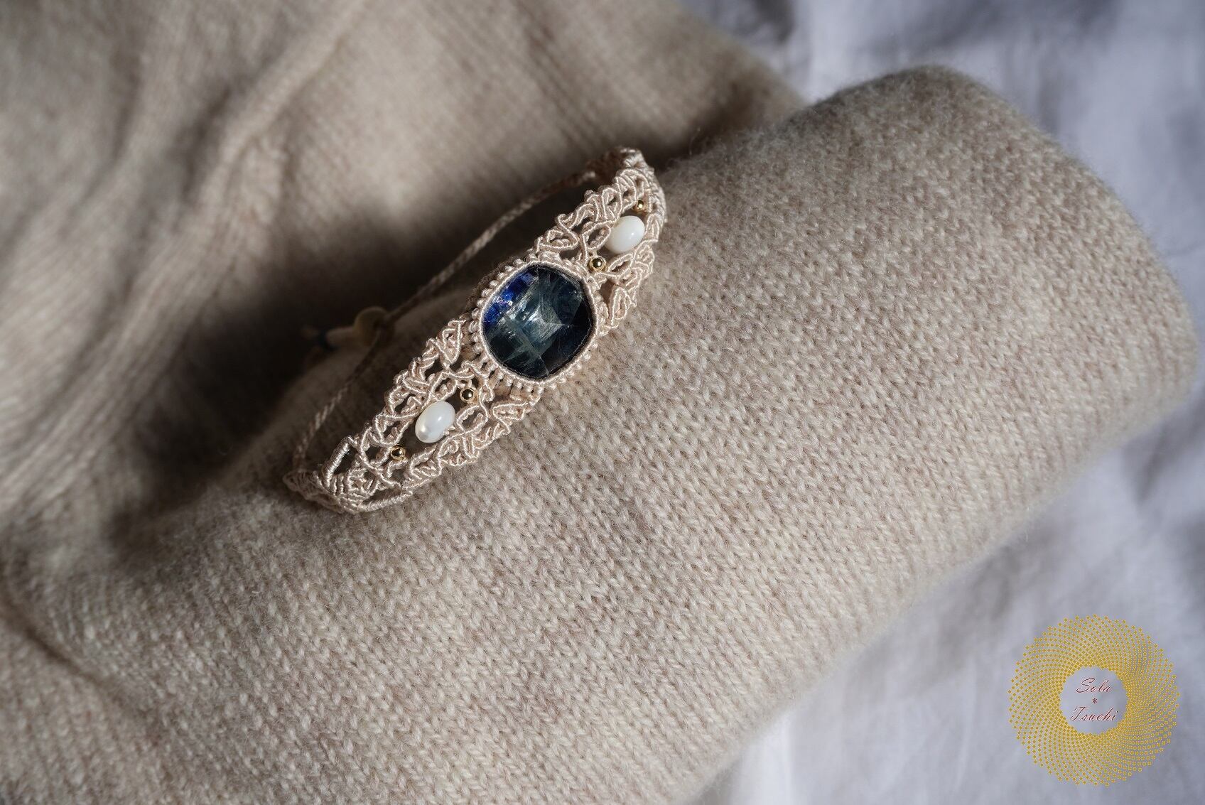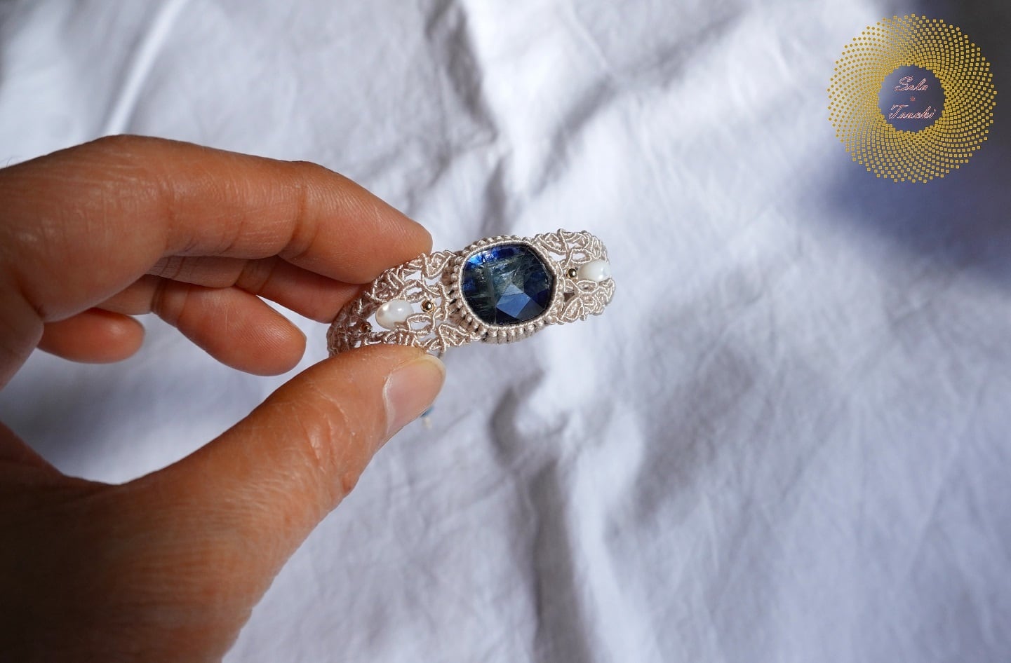 (絹糸)カイヤナイトのマクラメ編みブレスレット 〜Princess〜