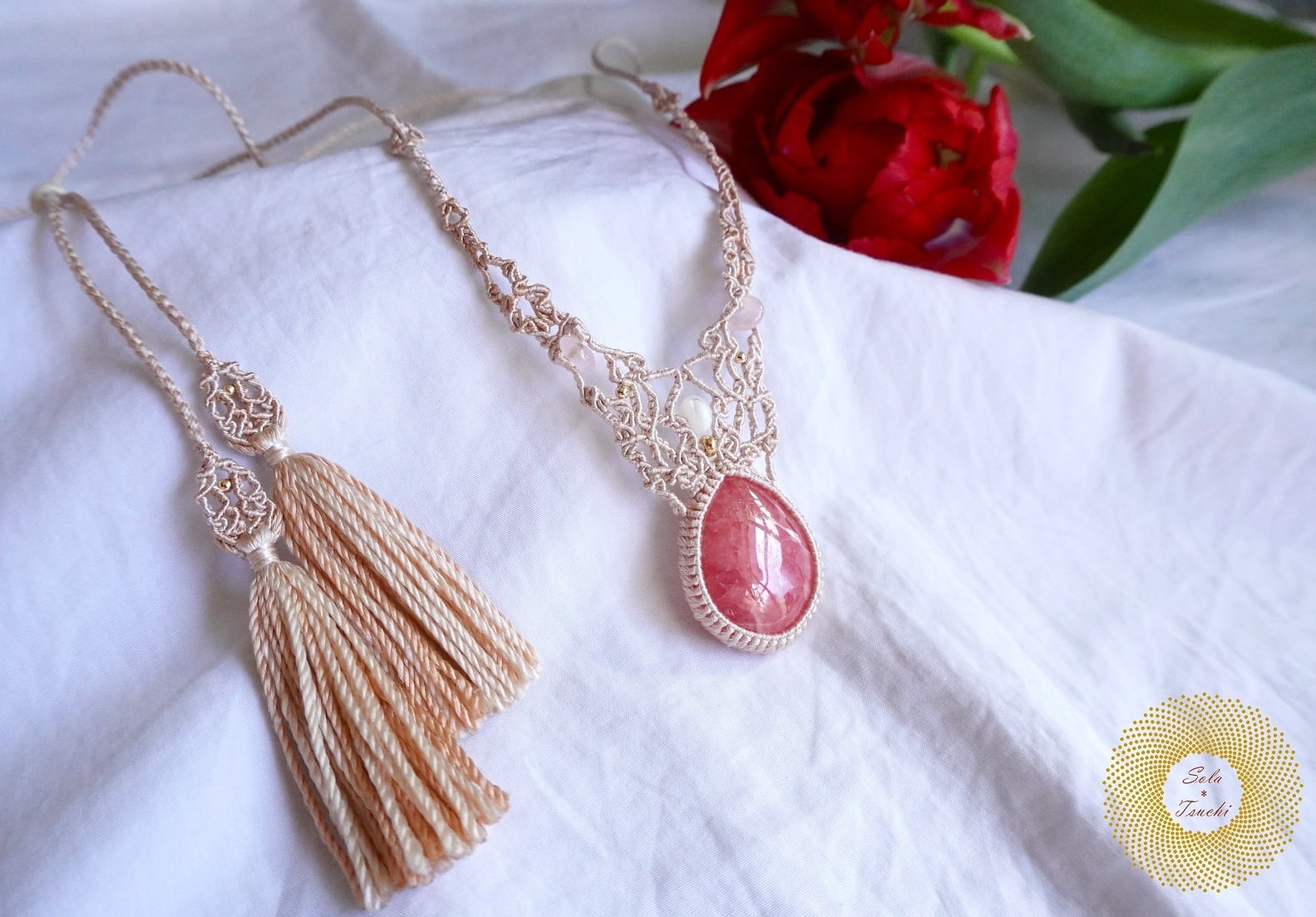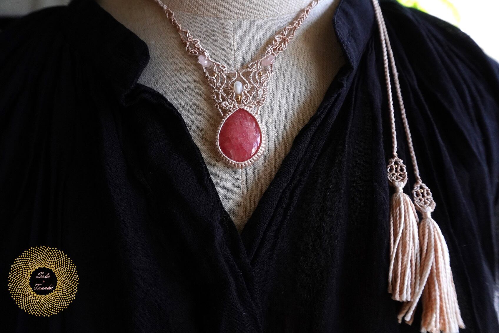 (絹糸)ロードクロサイトのマクラメ編みペンダント 〜Inner Passion〜