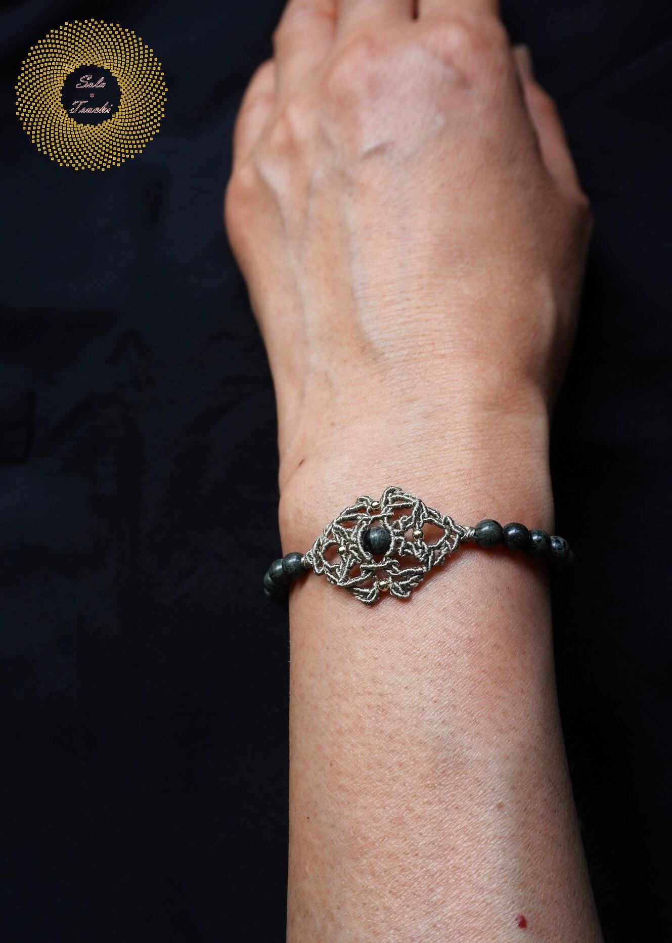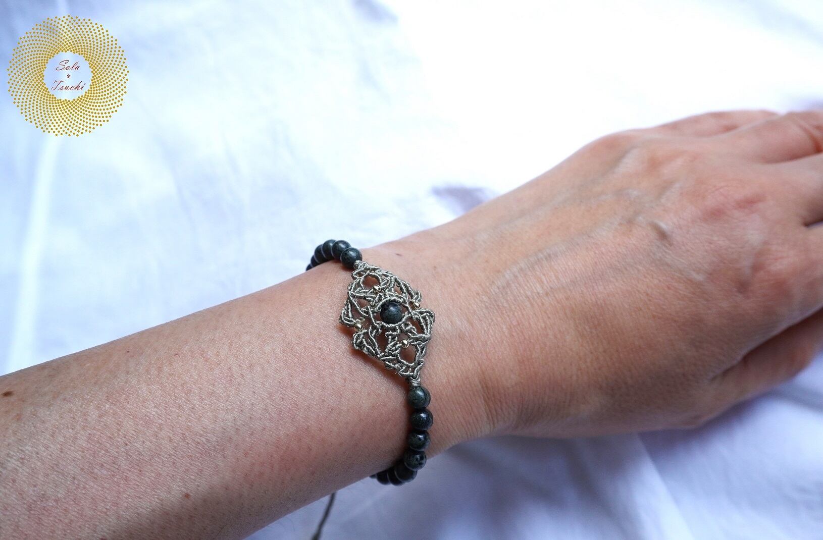 (絹糸)神居古潭(カムイコタン)石のマクラメ編みブレスレット 〜神々の住む場所〜