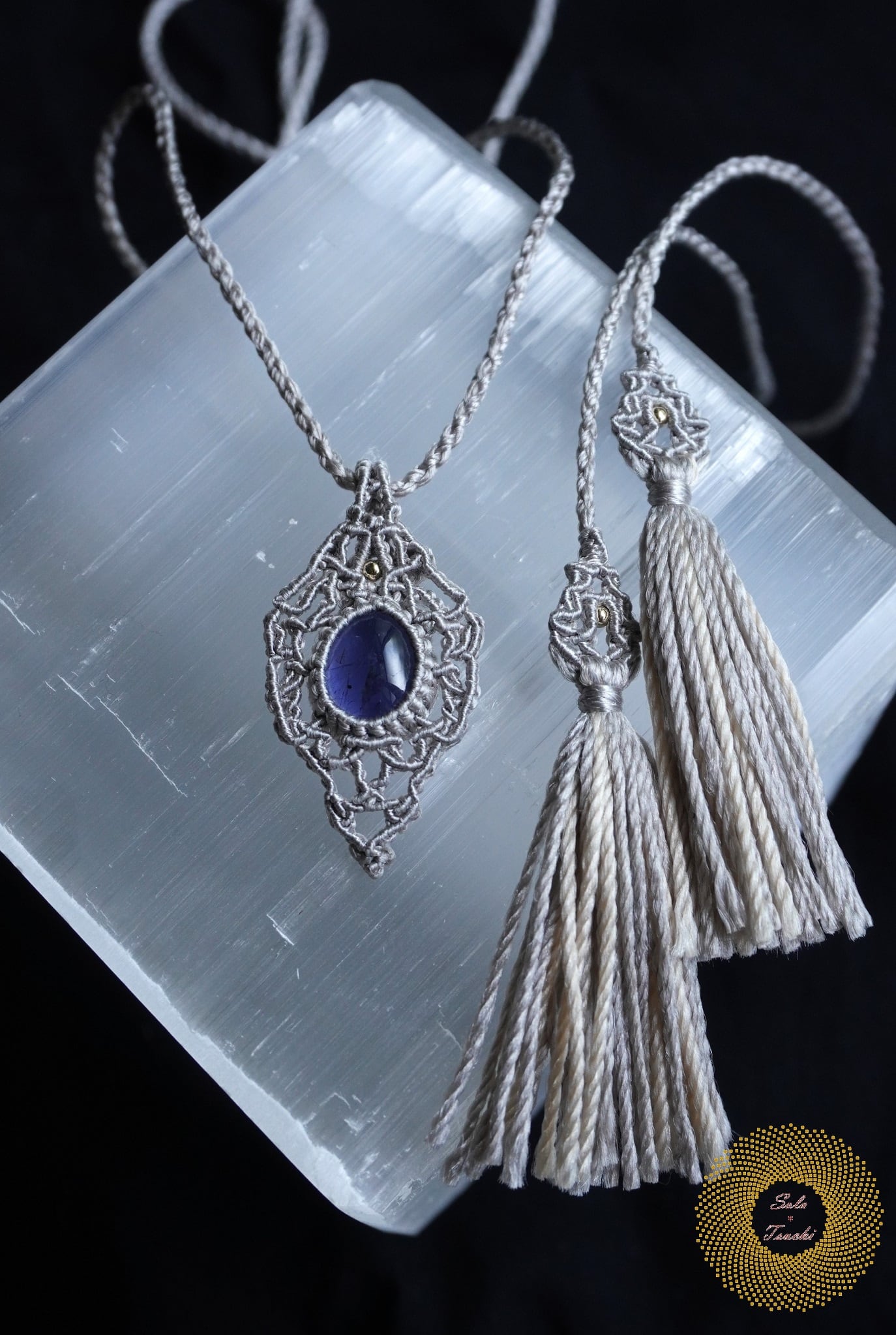 (絹糸) アイオライトのマクラメ編みペンダント 〜Tag〜