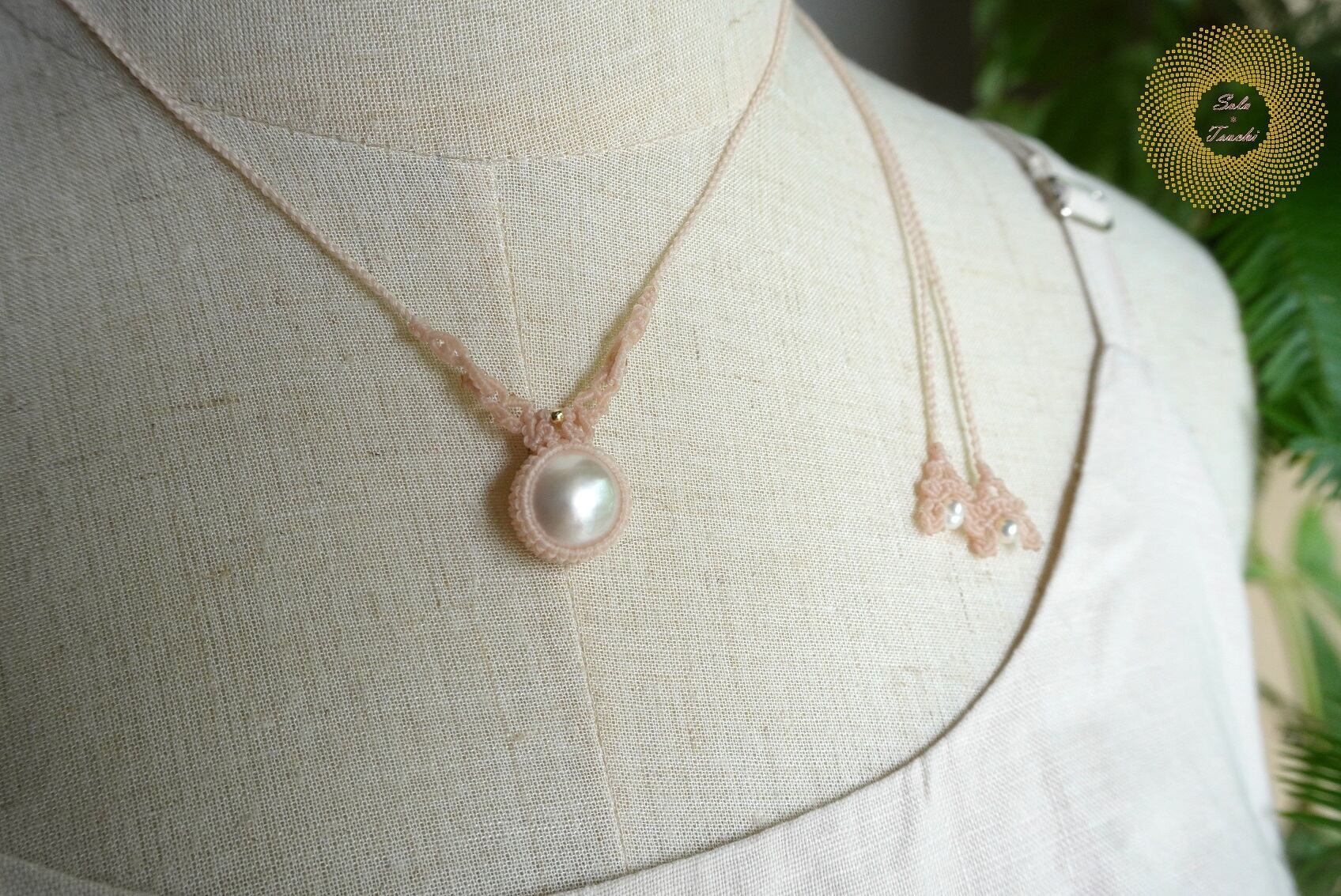 (ワックスコード) マベパールのマクラメ編みネックレス 〜Glad to meet you〜