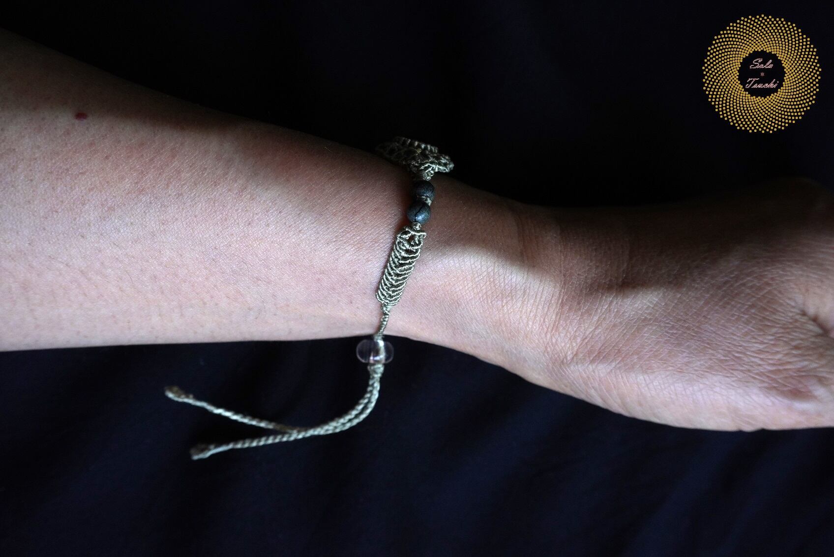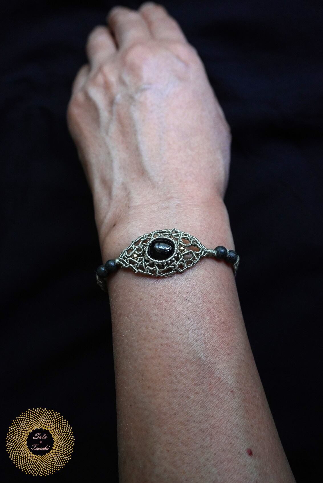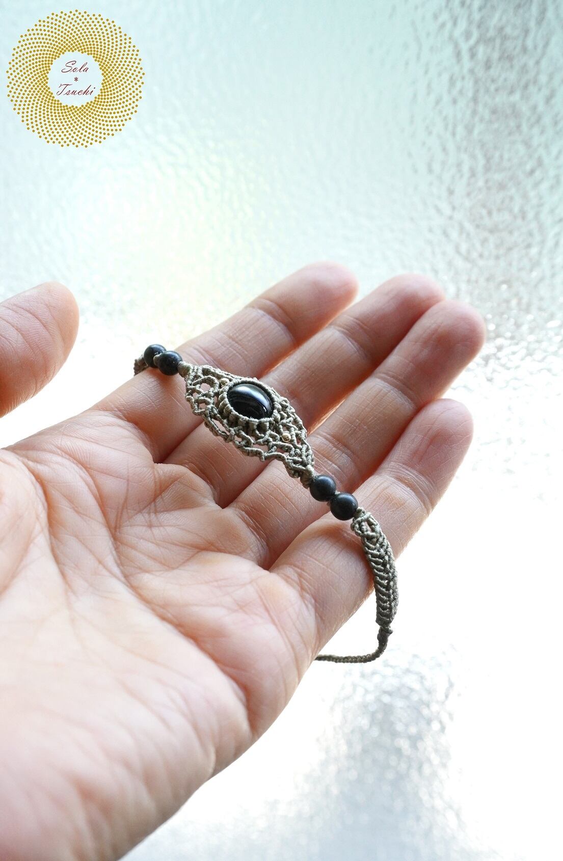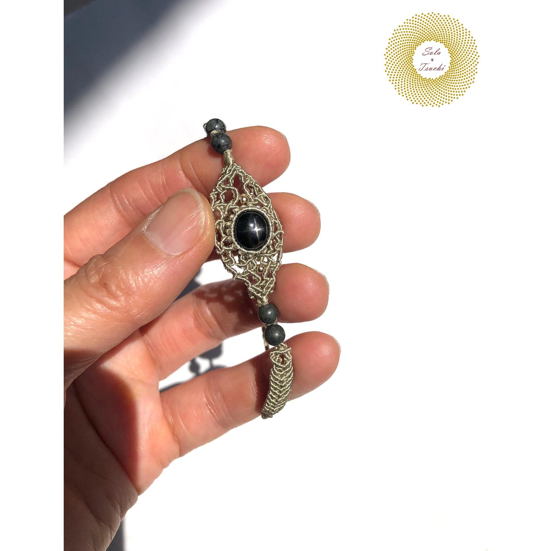 (絹糸) ブラックスターと神居古潭(カムイコタン)石のマクラメ編みブレスレット 〜Now〜