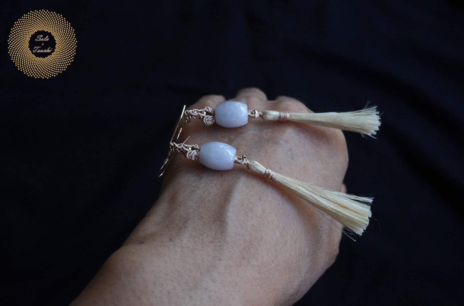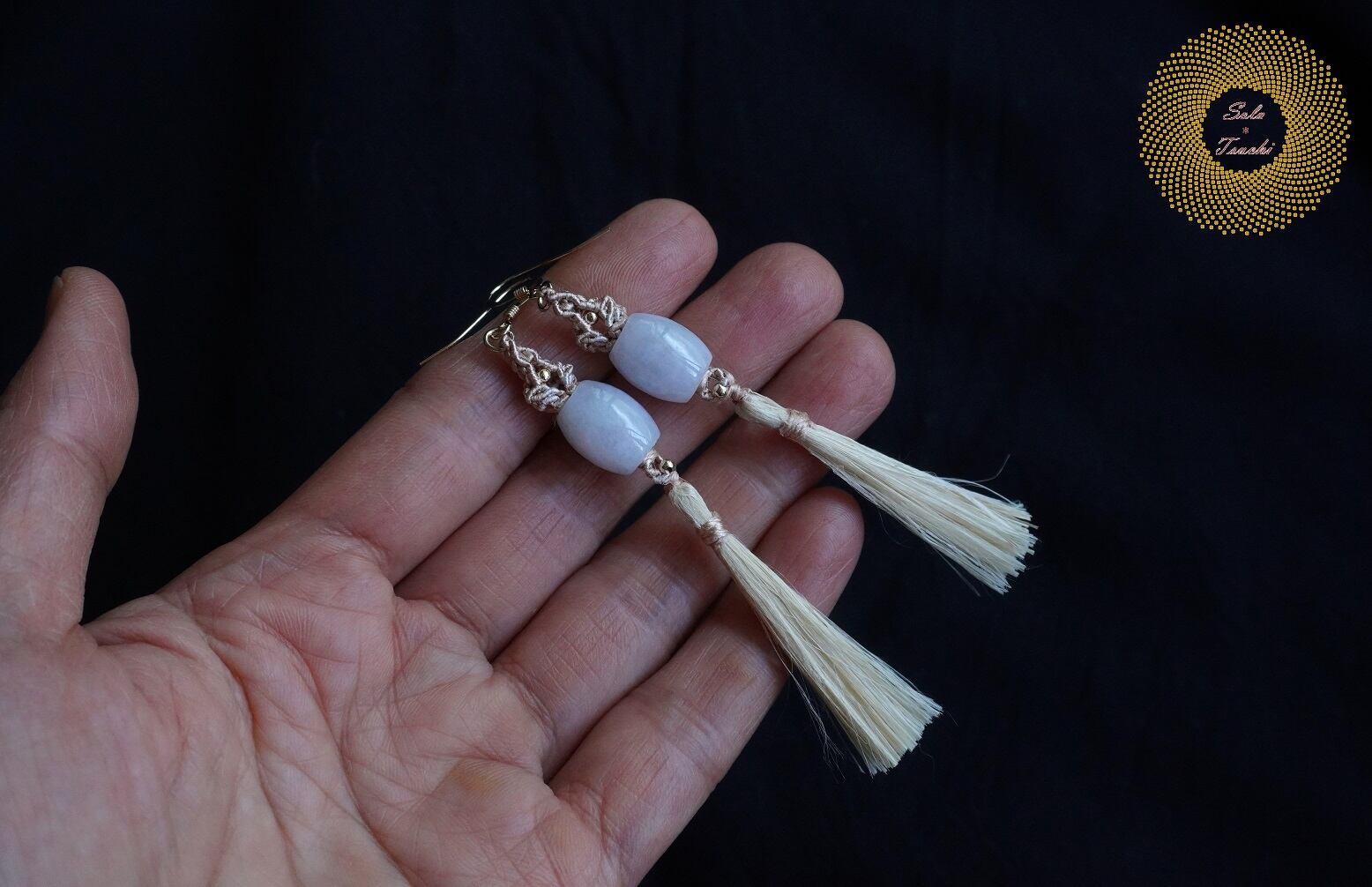 (絹糸)ラベンダー翡翠と精麻のマクラメ編みピアス 〜Celebrate〜
