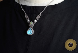 (ワックスコード)カザフスタン産ターコイズとオパールのマクラメ編みペンダント 〜Beautiful days〜