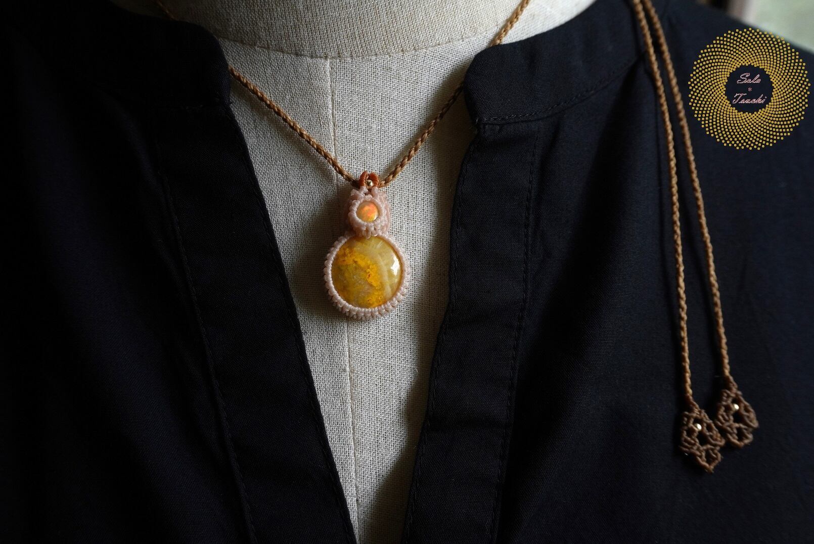 (ワックスコード)バンブルビージャスパーとオパールの マクラメ編みペンダント 〜Soleil〜