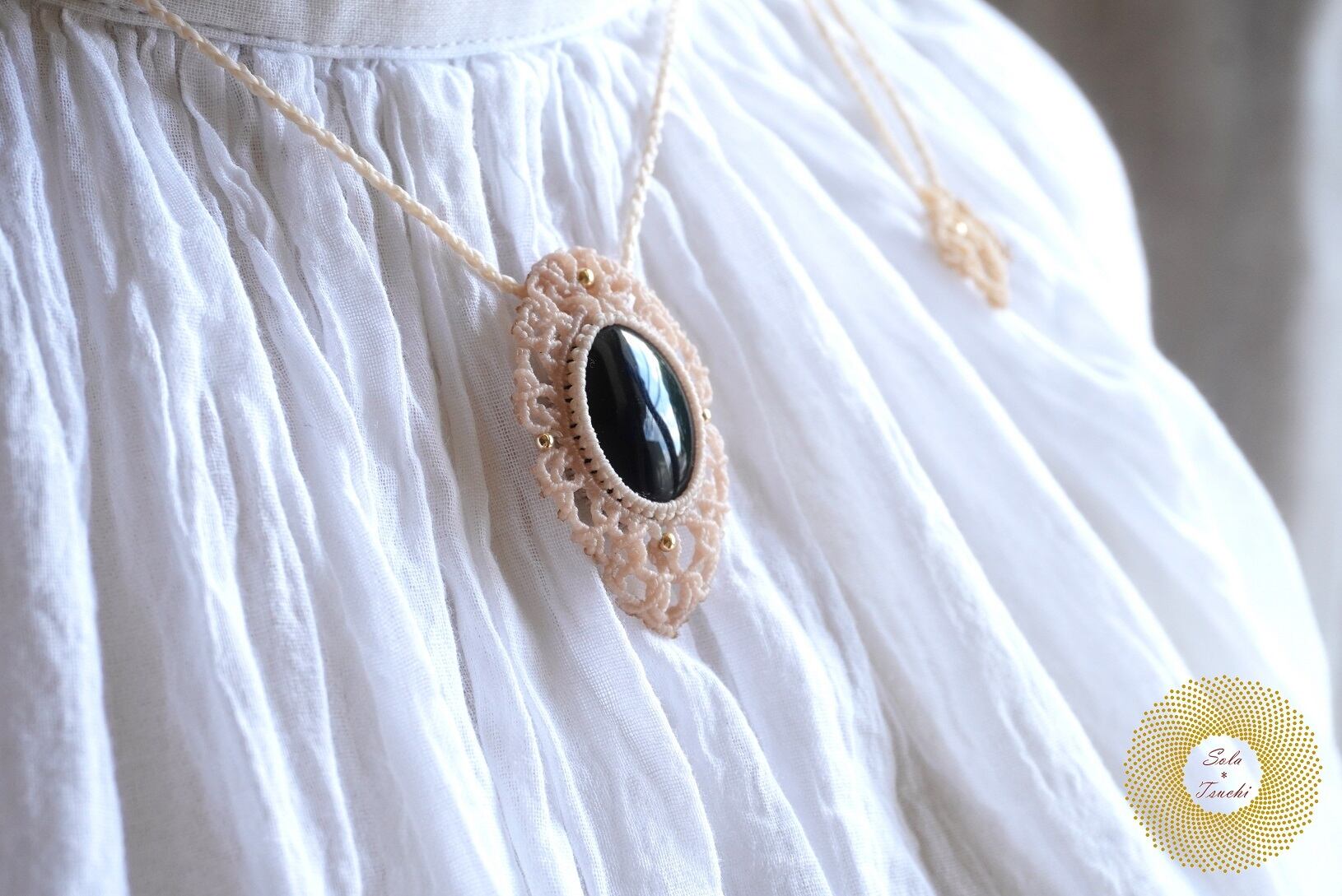(ワックスコード)オニキスのマクラメ編みペンダント 〜黒蝶〜