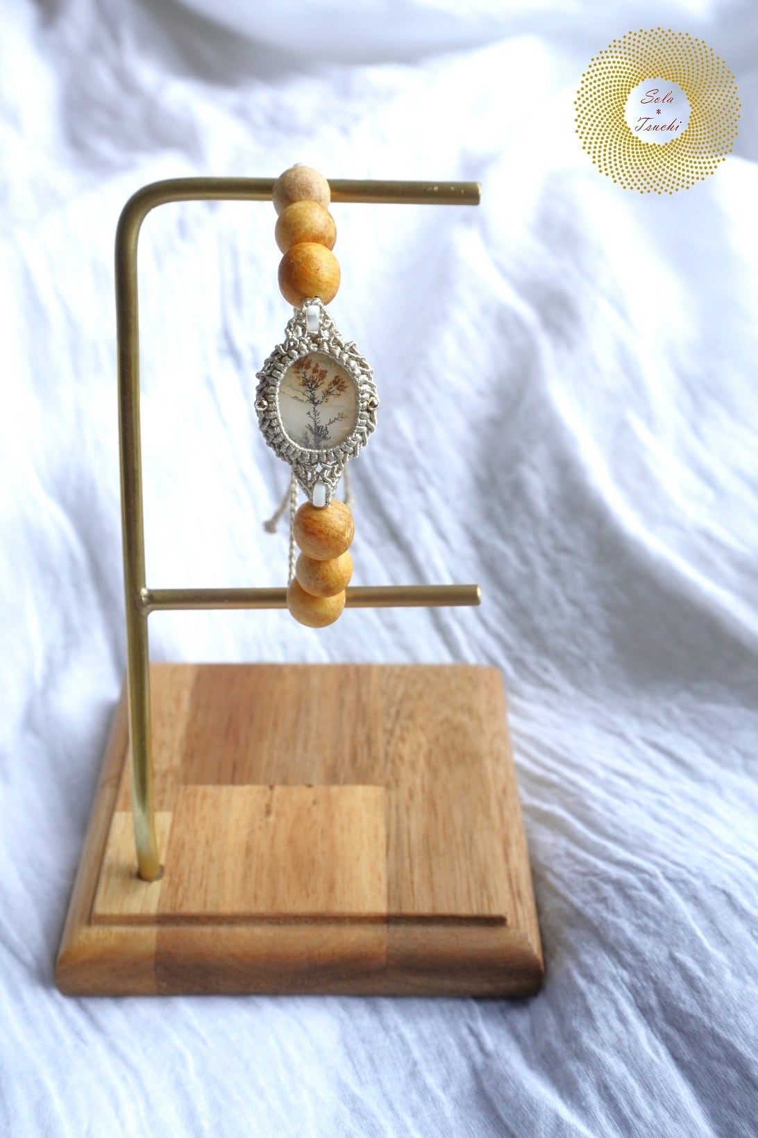 (絹糸)デンドリティックアゲートとパロサントのマクラメ編みブレスレット 〜Invitation〜