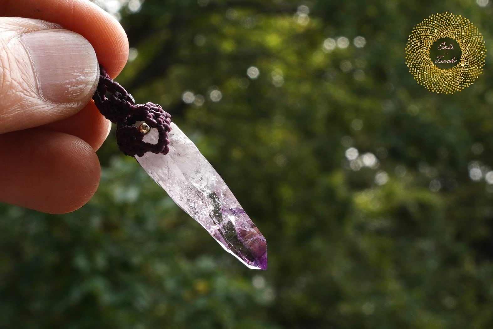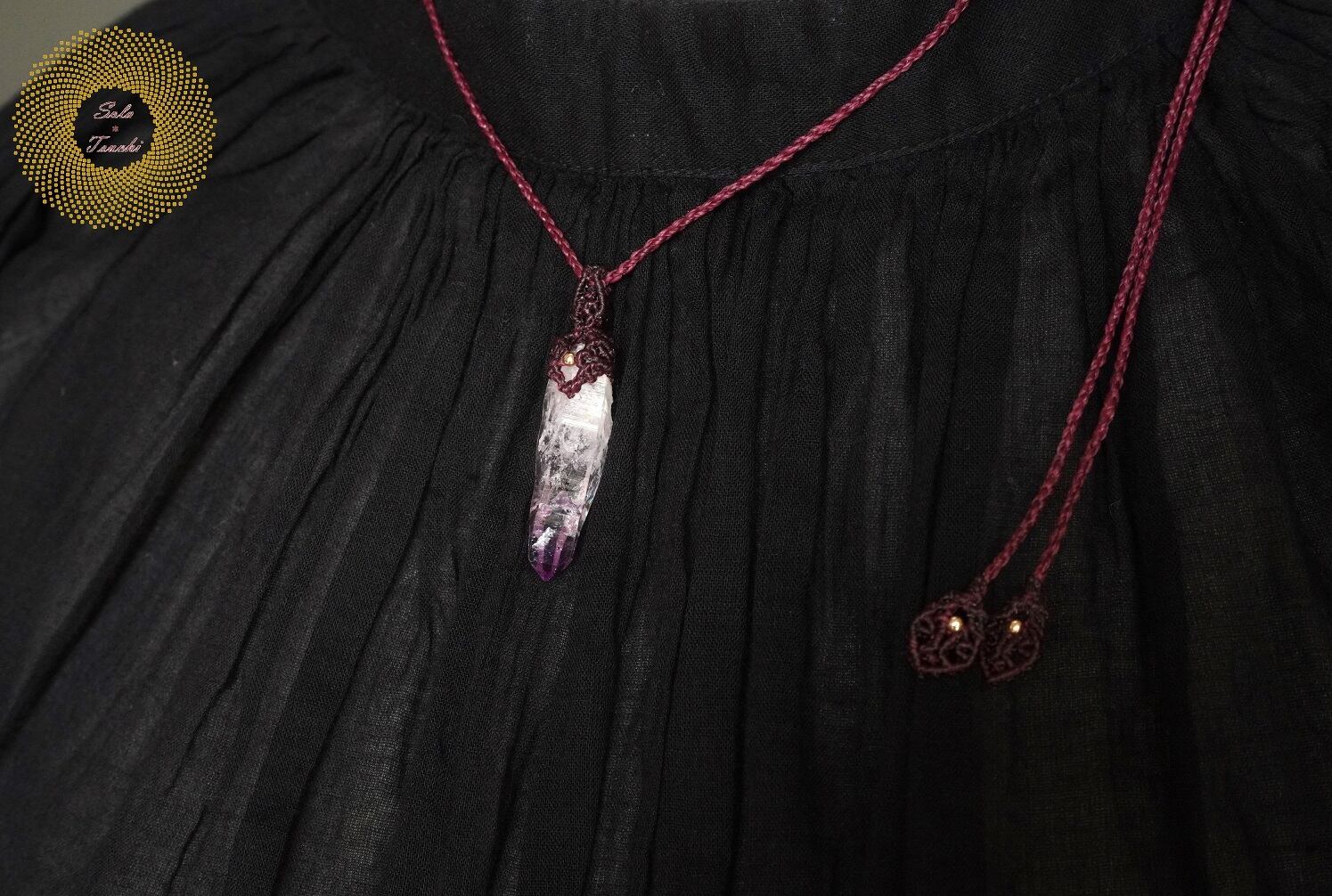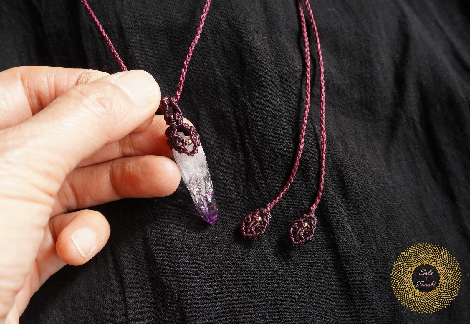 (ワックスコード)ベラクルス産アメジストのマクラメ編みペンダント 〜Core〜